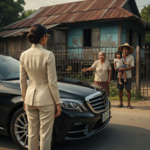Sakay ng bago kong Mercedes, tahimik akong bumiyahe pauwi. Sa bawat kilometro, bumabalik ang mga alaala—ang ulan, ang punit na bag, ang pintuang isinara sa akin. Pagdating ko, naroon pa rin ang lumang bahay. Halos pareho pa rin tulad ng dalawampung taon na ang nakalipas, kung hindi man mas sira.